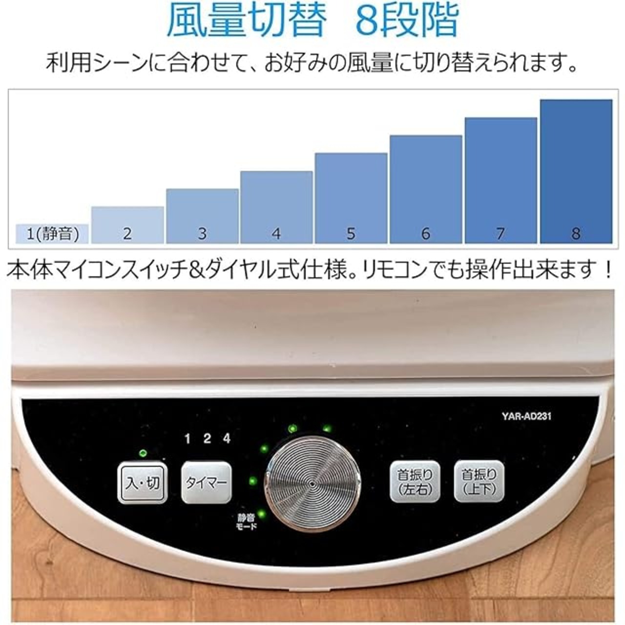 [山善] サーキュレーター DCモーター 静音 30畳 (換気/空気循環) 上下左右自動首振り 風量8段階調節 切タイマー機能付 リモコン付き ホワイト×ブラック YAR-AD238(WB) | emishop315