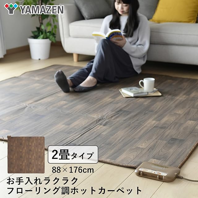 [山善] ホットカーペット フローリング調 電気カーペット 2畳 (176cm×176cm) 防水加工 暖房面切替 温度調節5段階 ダニ対策機能 6時間オートオフタイマー ダークブラウン YZC-209FL(DBR)