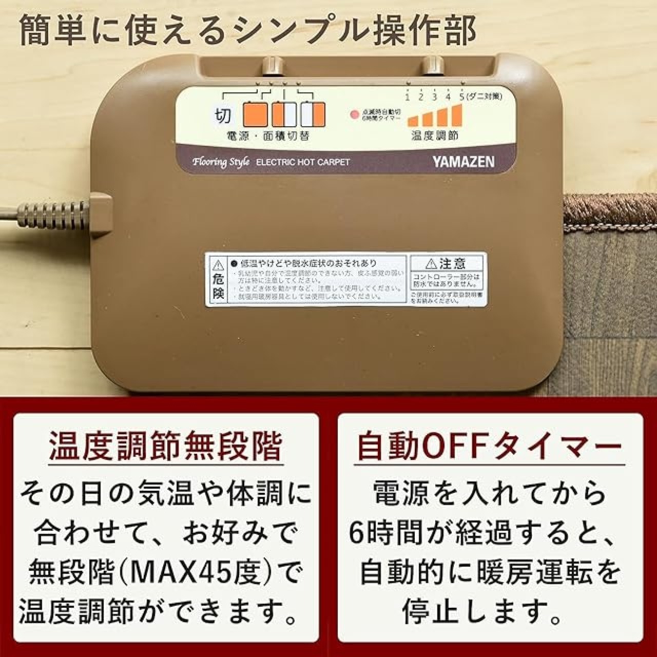 商品名:[山善] ホットカーペット フローリング調 電気カーペット 1.5畳 (126cm×180cm) 防水加工 暖房面切替 温度調節5段階 ダニ対策機能 6時間オートオフタイマー ダークブラウン YZC-169FL(DBR)