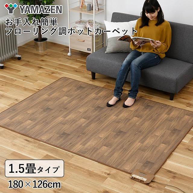 [山善] ホットカーペット フローリング調 電気カーペット 1.5畳 (126cm×180cm) 防水加工 暖房面切替 温度調節5段階 ダニ対策機能 6時間オートオフタイマー ダークブラウン YZC-169FL(DBR)
