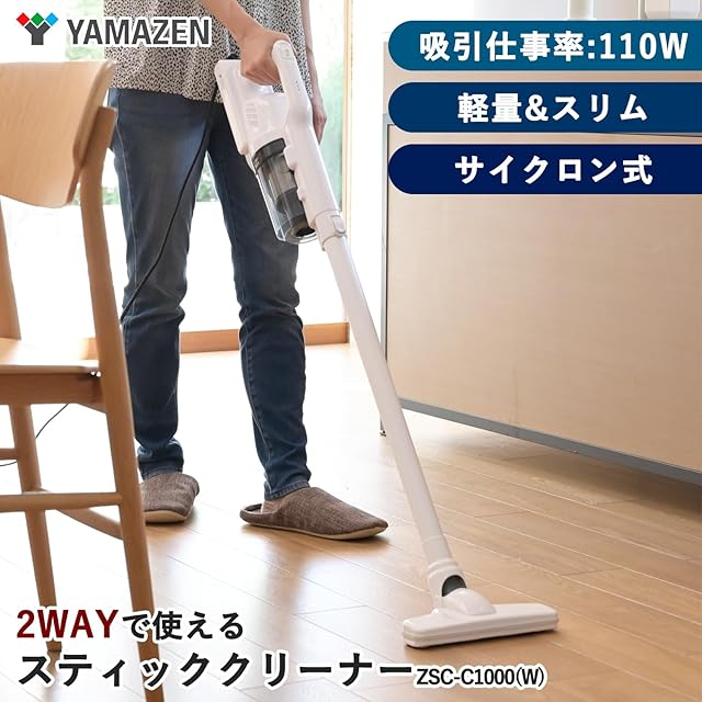 [山善] 掃除機 コード式 サイクロン 軽量 一人暮らし スティッククリーナー ハンディ 2WAY 強力吸引 簡単操作 簡単お手入れ すき間ノズル付き ホワイト ZSC-C1000(W) | emishop315