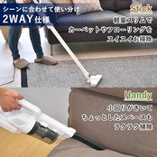 【2WAY】シーンに合わせてスティック&ハンディの2WAYで使えるサイクロンクリーナー。軽量スリムのスティックで床をスイスイお掃除でき、ハンディにすると小回りがきくのでテーブルや棚・ソファのお掃除も簡単に行えます。