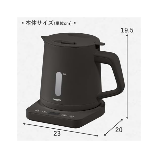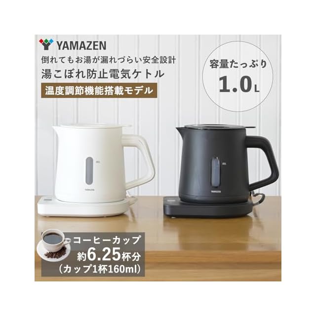 [山善] 電気ケトル 電気ポット 1.0L 1200W 一人暮らし 二人暮らし 湯こぼれ防止 温度調節 保温 空焚き防止 オートオフ機能 お手入れ簡単 ブラック YKU-SC1210J(B)