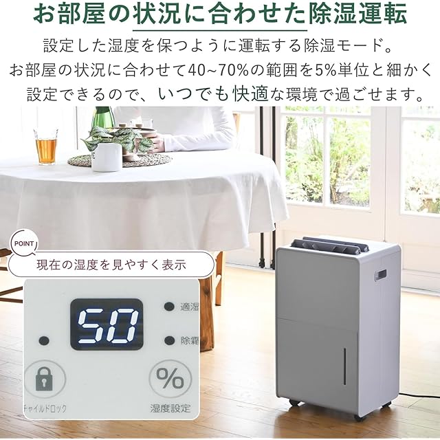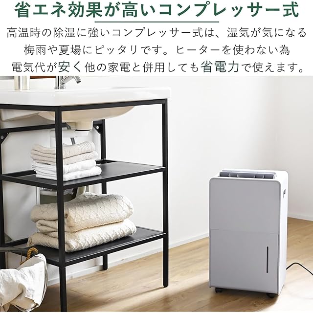 商品名:[山善] 除湿機 衣類乾燥 除湿器 コンプレッサー式 小型 強力除湿 除湿量 12.0L 衣類モード 切タイマー キャスター付き ライトグレー YDC-H120(H)