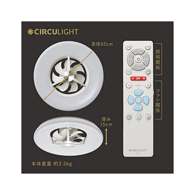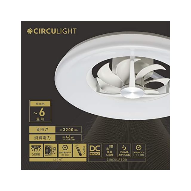商品名:【ハイエンドモデル】ドウシシャ サーキュライト シーリングファン 6畳 調光タイプ 光拡散レンズ搭載 薄型デザイン リモコン付き