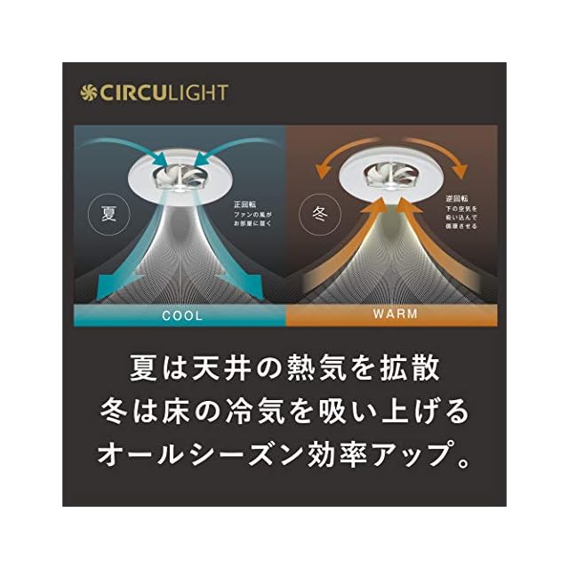 ■季節を問わず空調効率をアップ! ファン回転方向を切り替えることで、夏に適した下向きの風、冬に適した上向きの風を創りだし、冷暖房などの空調効率をアップさせることができます。