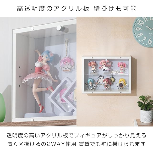 ドウシシャ 壁掛けできる 背面フェルトの コレクションケース 扉が外せてディスプレイや撮影がしやすい フィギュアケース ホワイト CCK40-WH 幅40cm×奥行13cm×高さ30cm ピンで取付できるから賃貸でも安心 壁掛け飾り棚 ウォールシェルフ ディスプレイラック