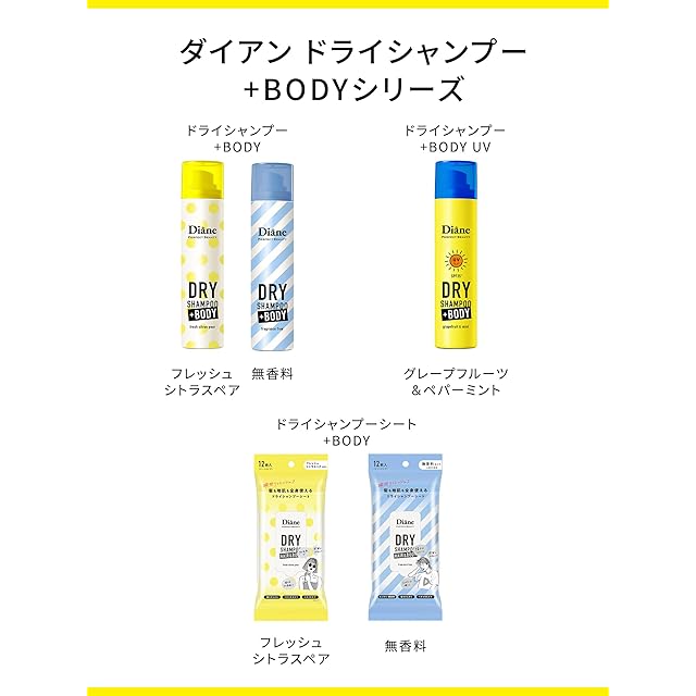 商品名:Diane(ダイアン) デオドラントスプレー ボディ用 ドライシャンプー [UVケア]グレープフルーツ&ペパーミントの香り 95g +BODY プラスボディ 制汗 スプレー