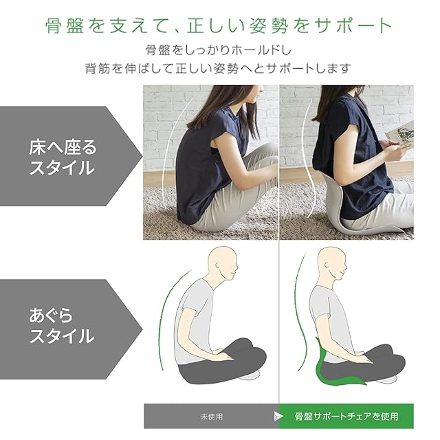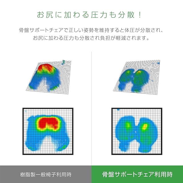 男女の骨盤の違いに合わせて開発された骨盤サポートチェア。骨盤を支えてしっかりホールド。