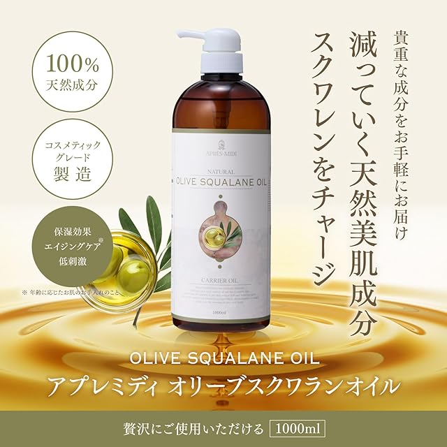 商品名:オリーブスクワランオイル 1000mL 植物性 ボタニカル 天然100% マッサージ フェイス ボディ 無香料 保湿 大容量 <アプレ・ミディオイル OSQ>