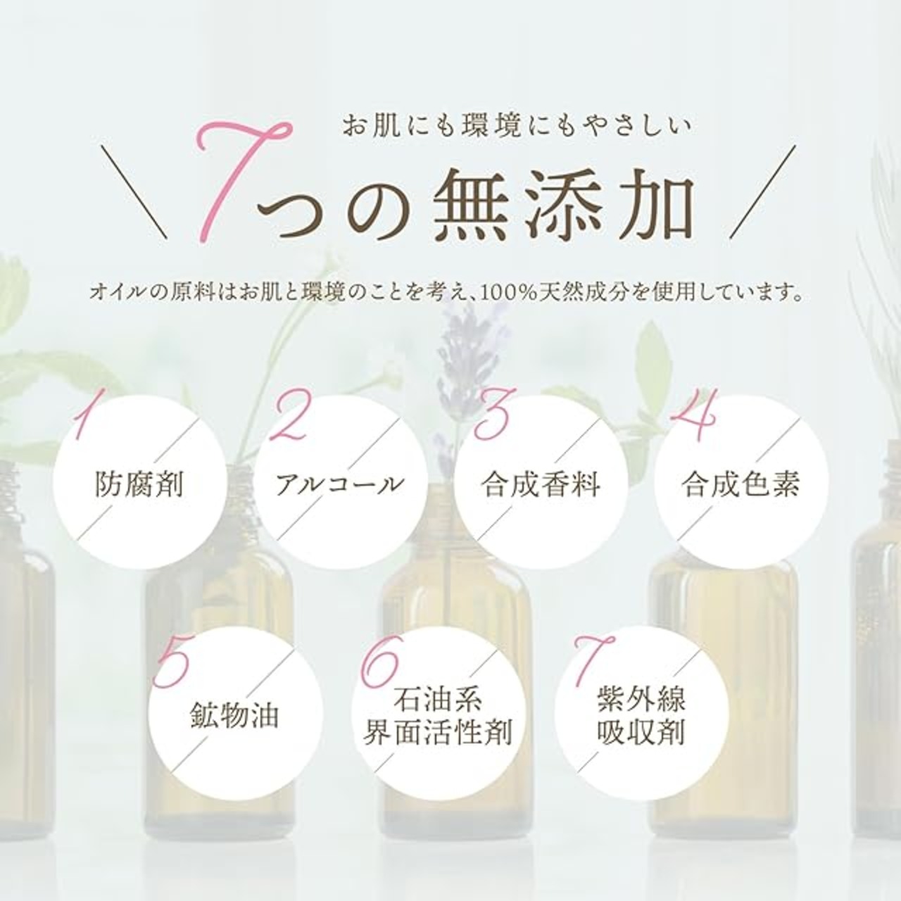 【おすすめの使い方】①洗顔後の保湿ケアに。洗顔と化粧水の後にオイル2~3滴を顔全体になじませて、その後に乳液やクリームをつけます。②マッサージオイルに。適量を手に取り、マッサージをしながら全体に浸透させます。入浴後、からだがあたたまっている状態でのご使用がおすすめです。③髪に艶と潤いを。オイル2~3滴をタオルドライした髪に毛先を中心に馴染ませドライヤーをかけます。