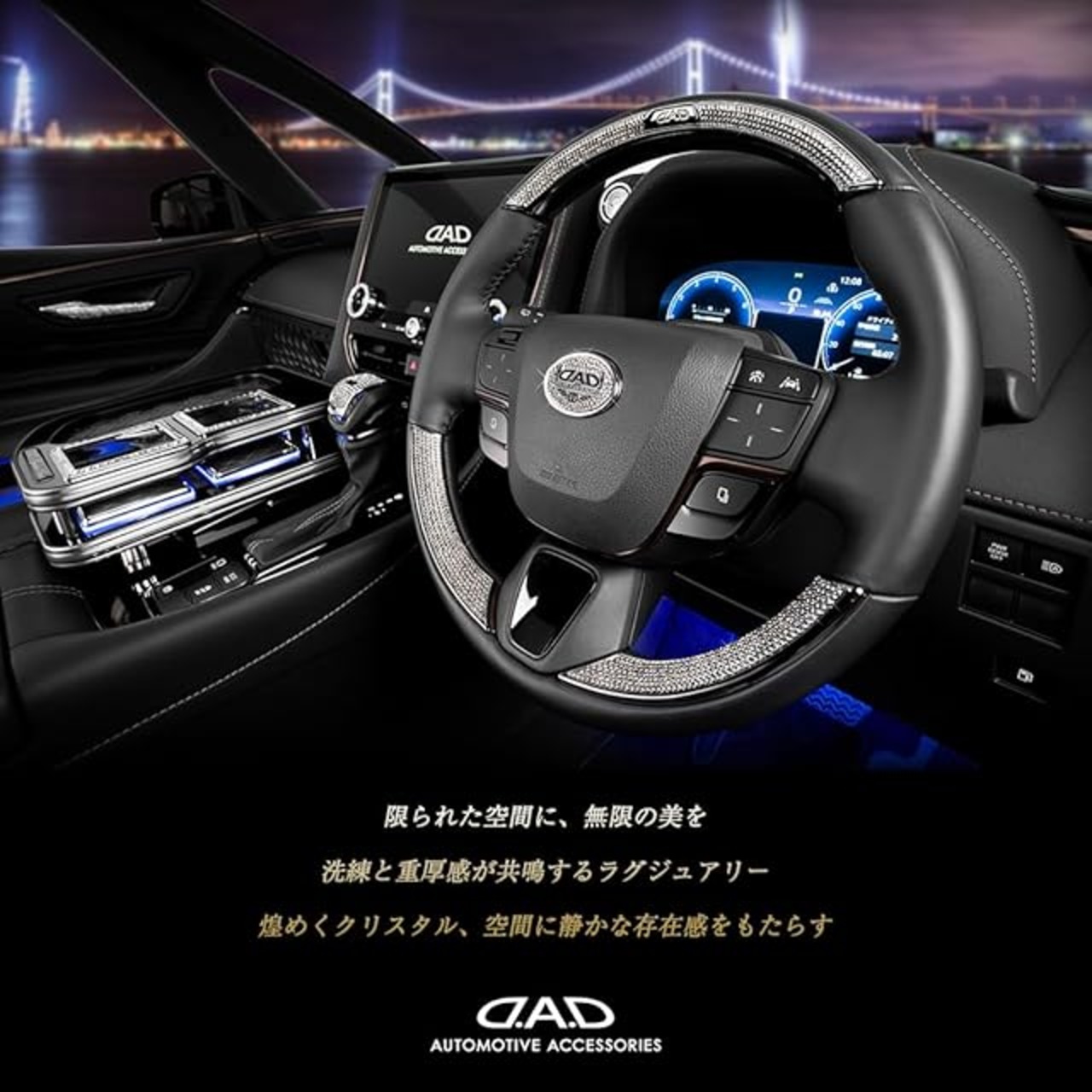 職人が一針一針丁寧に仕上げた、D.A.Dこだわりの完成度の高いステアリングカバー。 車内に乗り込んだ際、まず目に付くステアリング。 このステアリングカバーは純正の味気ないステアリングを一瞬でラグジーに格好良く変えてくれます。 そして見た目が良くなるのは勿論ですが、装着して使用するとハンドルが握りやすくなり、楽に車の操作が出来、見た目と実用性を兼ね備えたドレスアップアイテムです。 素材には通気性のある難燃性高耐久PUレザーを採用し、 汗ばみ難い極上の触り心地と高いグリップ力で快適なロングドライブを楽しんで頂けます。 裏面はこだわりのゴムを採用しゴム臭は無く、高寿命、高グリップ力を実現し、ずれる心配なく永くご使用頂けます。