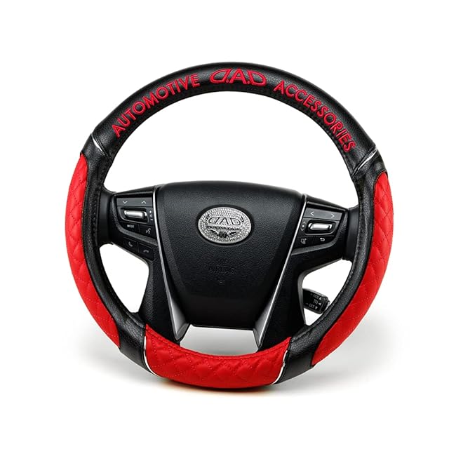 職人が一針一針丁寧に仕上げた、D.A.D(DAD/ギャルソン)こだわりの完成度の高いステアリングカバー。 車内に乗り込んだ際、まず目に付くステアリング。 このステアリングカバーは純正の味気ないステアリングを一瞬でラグジーに格好良く変えてくれます。 そして見た目が良くなるのは勿論ですが、装着して使用するとハンドルが握りやすくなり、楽に車の操作が出来、見た目と実用性を兼ね備えたドレスアップアイテムです。 素材には通気性のある難燃性高耐久PUレザーを採用し、 汗ばみ難い極上の触り心地と高いグリップ力で快適なロングドライブを楽しんで頂けます。 裏面はこだわりのゴムを採用しゴム臭は無く、高寿命、高グリップ力を実現し、ずれる心配なく永くご使用頂けます。