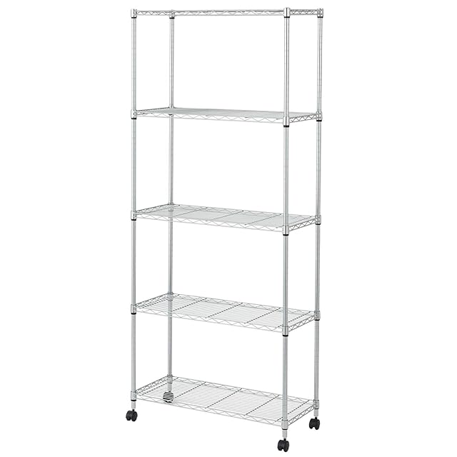 ドウシシャ メタルルミナスラック キャスター付き スチールラック幅75 5段 EL19-18755 軽量で組立簡単工具いらず 幅74.5×奥行き34.5×高さ178.0cm 棚板耐荷重80kg 全体耐荷重400kg 頑丈 防錆加工 ポール径19mmパーツ対応 キッチンラック 隙間収納 | emishop315