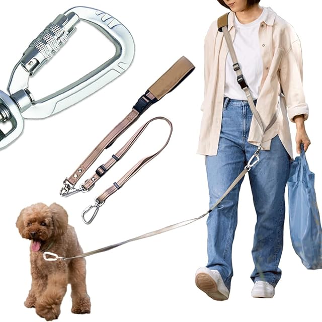 選べる11色!両手が使えるショルダーリード。毎日のお散歩のお悩みを解消します。トイレ処理や両手で荷物を持てない。愛犬をスマホで撮影したいなどのお悩みを解消します。 飼い主さんの使い勝手とわんちゃんの安全性に徹底的にこだわりました。こちらの商品の一番のポイントはロック式カラビナです。お散歩中にリードの金具が外れてしまい突然の出来事に慌ててしまった事がある方もいると思います。愛犬が逃げ出して何かあったらと考えるだけでヒヤッとします。そんな方にオススメしたい商品です。