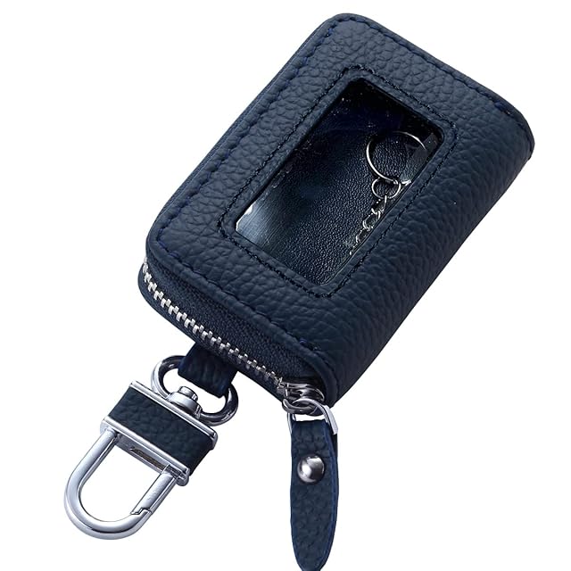商品名:スマートキーケース クリア窓付き ネイビー 本革 キーケースASK-CM012
