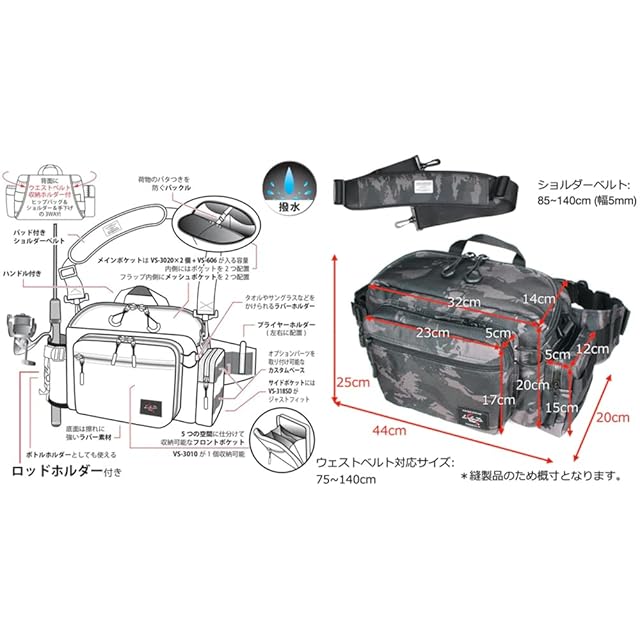 H25cm x W44cm x D20cm (ウェストベルト除く)