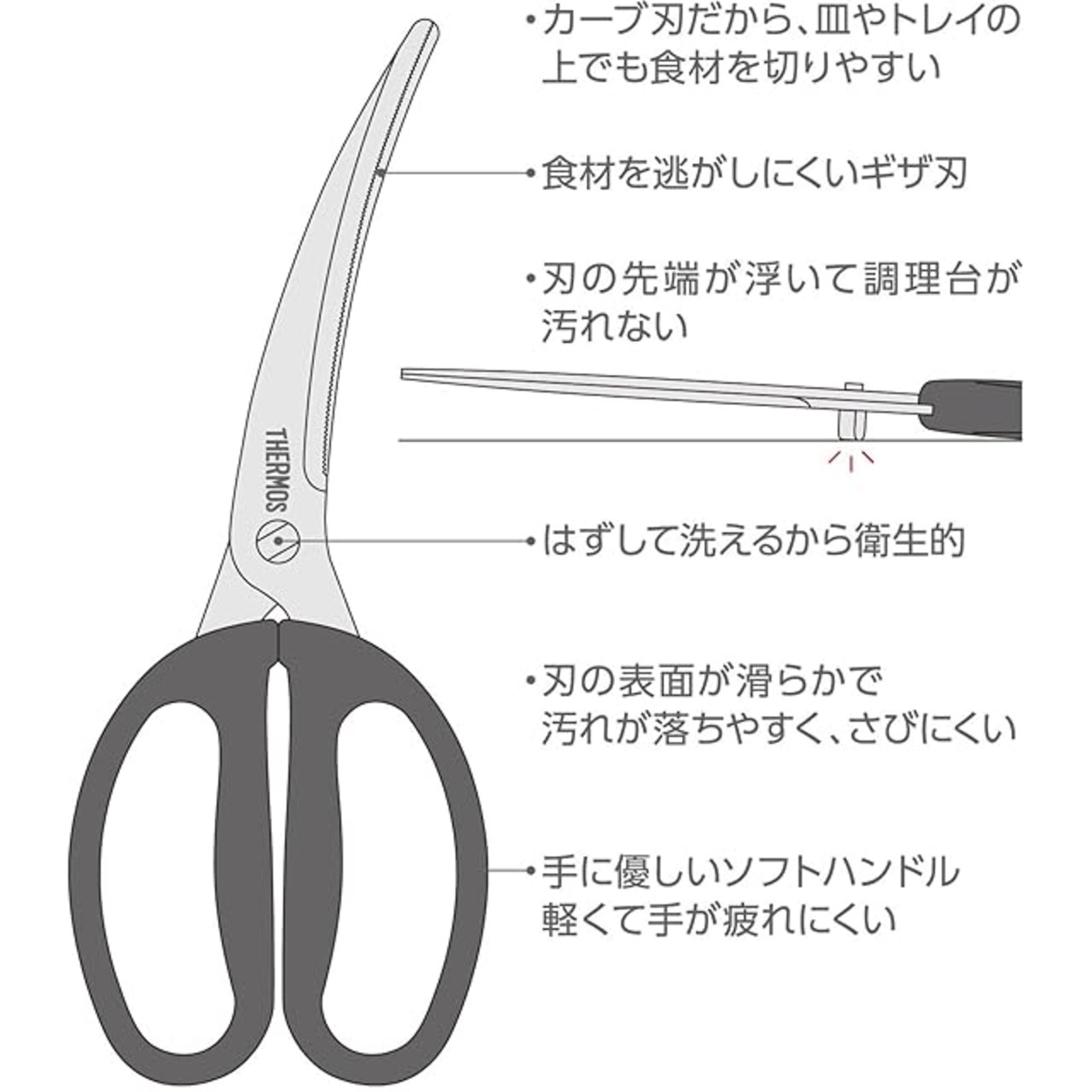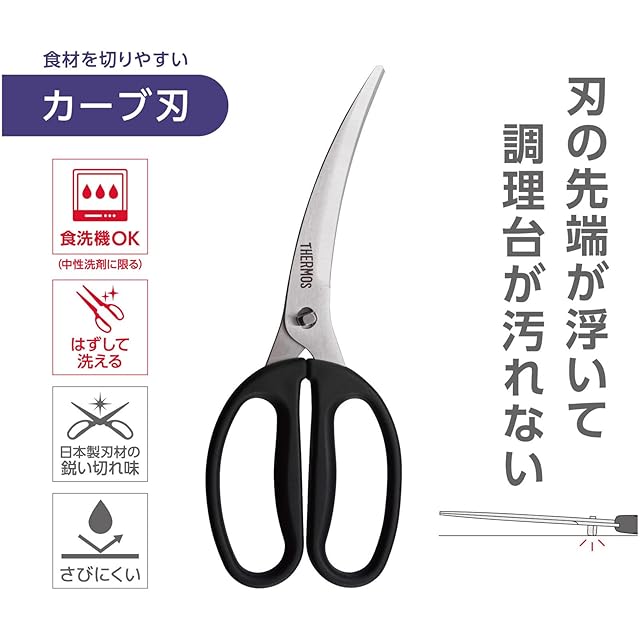 サーモス キッチンバサミ カーブ 刃 ブラック 分解式 食洗機対応 料理ばさみ 日本製刃材の鋭い切れ味 刃先が浮いて浮いて調理台が汚れない 汚れが落ちやすくさびにくい KK-HC001 BK | emishop315