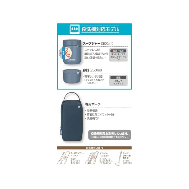 商品名:【食洗機対応モデル】 サーモス 真空断熱スープランチセット 300ml インディゴブルー スープジャー・容器セット JEE-550 IBL