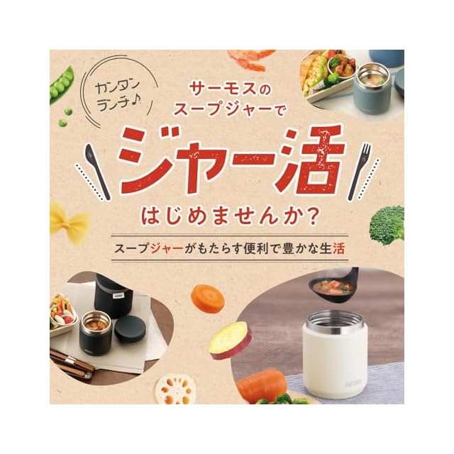 素材:【スープジャー】本体:ステンレス鋼(アクリル樹脂塗装)/ 外フタ:ポリプロピレン(発泡ポリプロピレン内蔵)/ 内フタ:ポリプロピレン / ベンパッキン・シールパッキン:シリコーンゴム /【容器】本体・フタ:ポリプロピレン / フタパッキン:シリコーンゴム / 【ポーチ】外生地・内生地:ポリエステル / クッション(断熱材):発泡ポリエチレン
