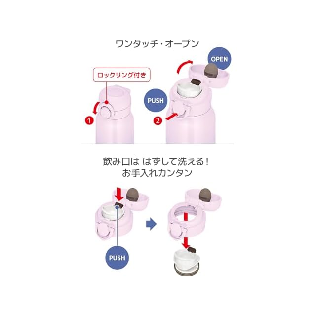 素材・材質:内びん:ステンレス鋼 / 胴部:ステンレス鋼(アクリル樹脂塗装)/ フタカバー:ABS樹脂 / フタ・せん本体・飲み口:ポリプロピレン / フタパッキン・せんパッキン:シリコーンゴム