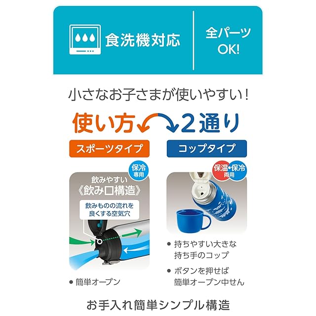 保温効力:(中せん使用時)72℃以上(6時間)/ 保冷効力:(キャップユニット使用時)9℃以下(6時間)