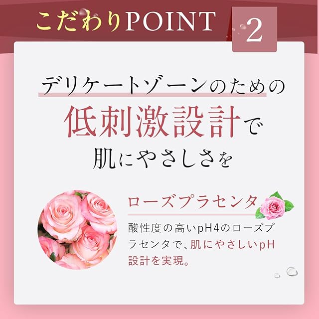 【 低刺激 】酸性度の高いpH4のローズプラセンタで肌に優しいpH設計を実現。