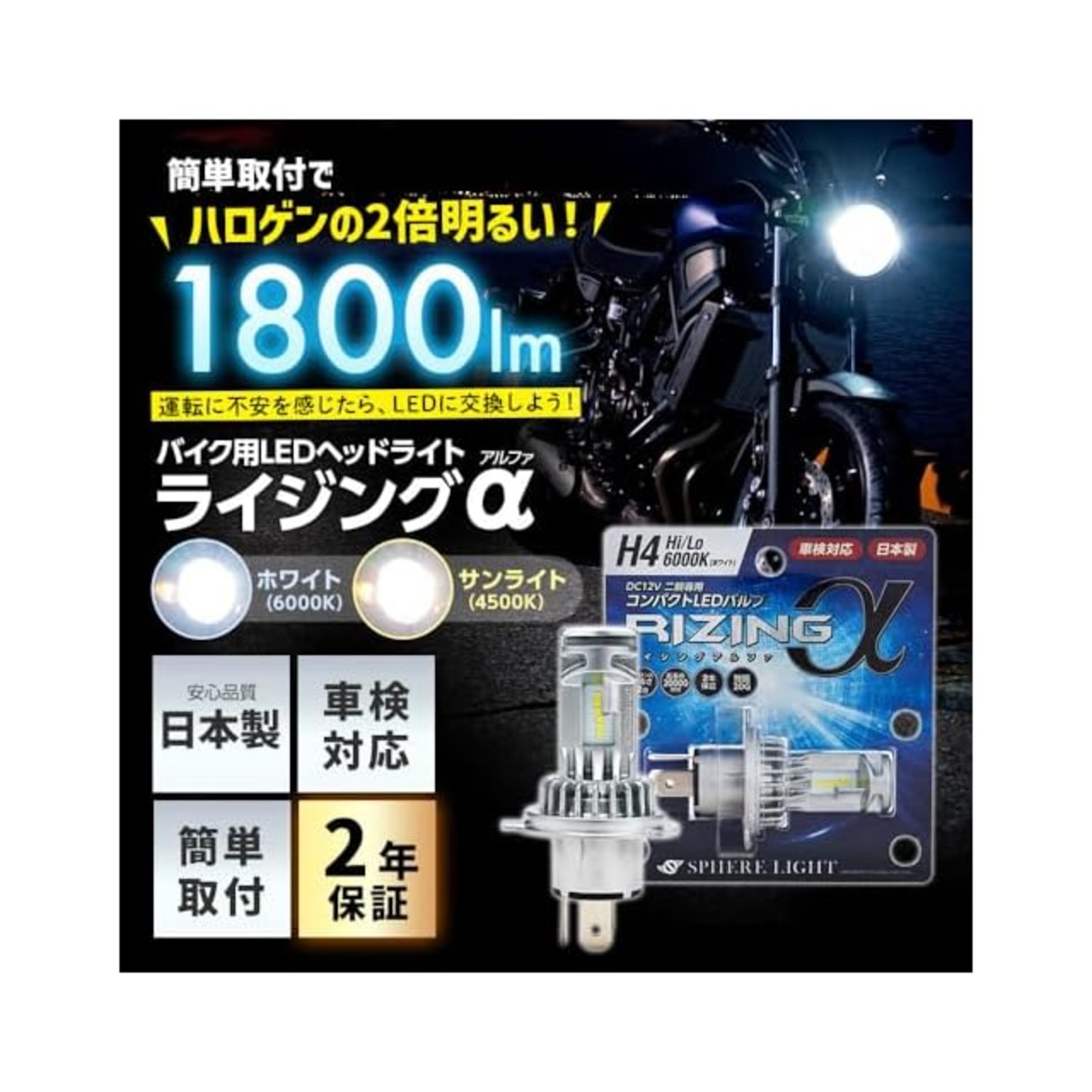 商品名:スフィアライト(Spherelight) スフィアLED ライジングα 2輪用 H4 Hi/Lo 4500K SRAMH4045-02