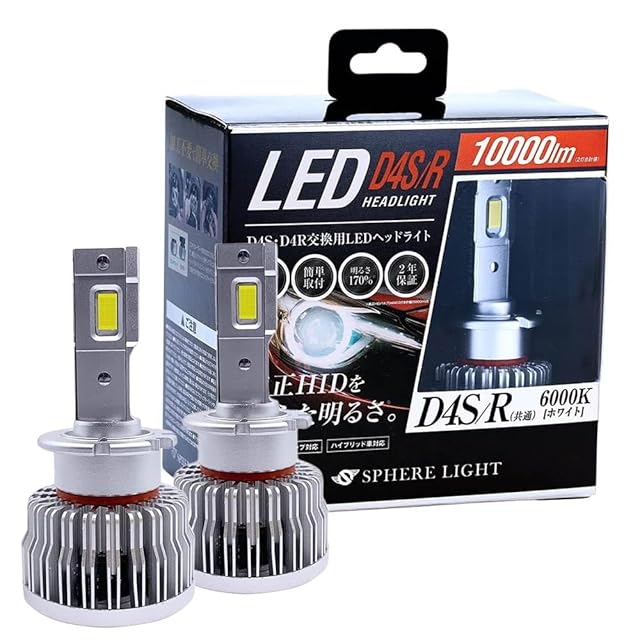 商品名:スフィアライト D4S D4R LED ヘッドライト 6000K ホワイト 10000lm 12V プロジェクター対応 車検対応 ポン付け 純正 HID 冷却ファン 搭載 シェード 付属 SPHERELIGHT SLGD4SR060