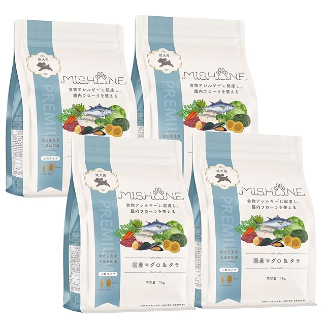 商品名:ミシュワン ドッグフード 成犬用(国産マグロ&タラ)1kg×4個 【獣医師監修】 皮膚・関節ケア 鶏肉アレルギー