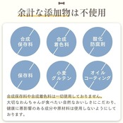 合成保存料・調味料・着色料・香料・防腐剤不使用。涙やけの原因になりやすいオイルコーティングは使用せず、「カツオ節」の風味で食いつきを強化しました。