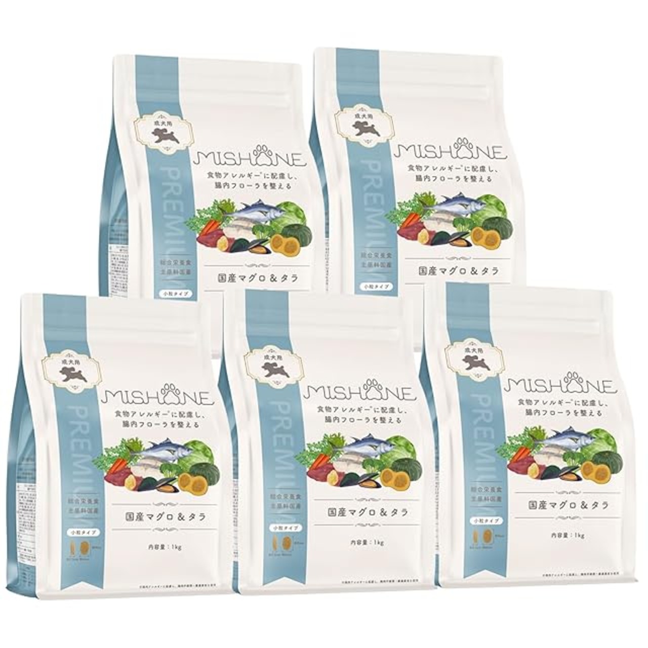 商品名:ミシュワン ドッグフード 成犬用(国産マグロ&タラ)1kg×5個 【獣医師監修】 皮膚・関節ケア 鶏肉アレルギー