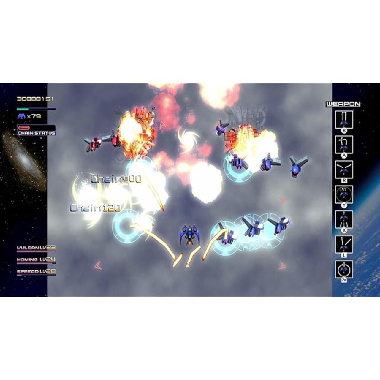 同じ敵を倒し続けることでスコアが伸び続けるチェーンボーナス、また特定の順番で敵を倒すことにより発生するシークレットボーナス、隠しスコアアイテムの存在。これらを網羅し、攻略におけるオリジナルパターンを構築し、狙った敵を的確に撃破することがスコア獲得への鍵となります。