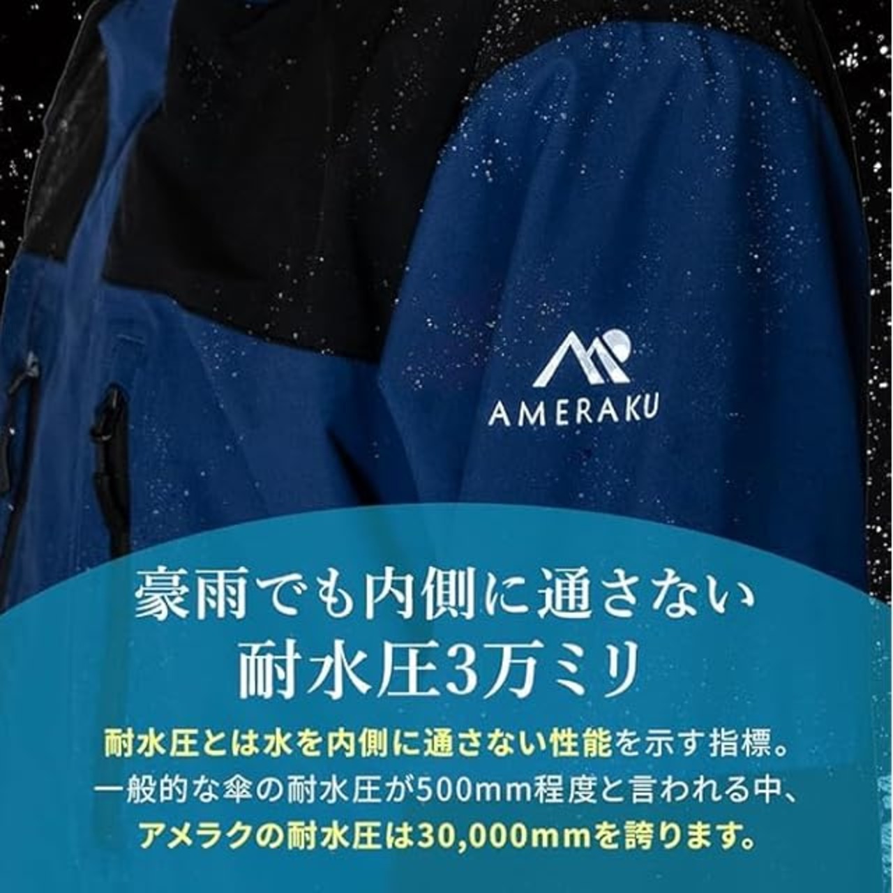 商品名:NNOUM(ノアム) レインウェア 上下セット プロも納得のレインスーツ メンズ レディース 自転車 レインコート ゴルフ 登山 透湿 防水 ストレッチ レインパンツ・ジャケット カッパ 雨合羽 雨具 AMERAKU アメラク NN25NSRA06M